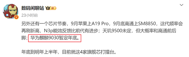 在智能手机芯片赛道硝烟弥漫之际,华为即将掷出一枚关键棋子,那就是华为下一代旗舰芯片麒麟9030,将于今年年底随Mate80系列一同亮相。